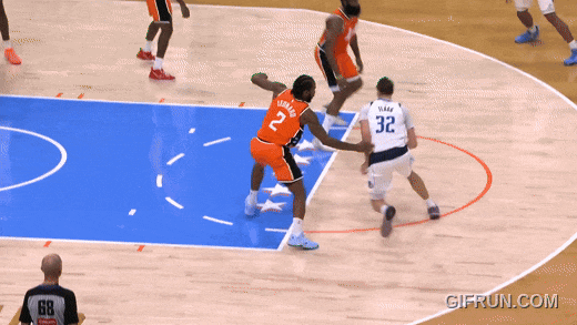 这一球大概让弗拉格看出哈登破绽,上半场不止一次拉球闪过哈登,左手上篮;下半场开始,弗拉格更过分:一个拉球突破,径直突破篮下砸扣。