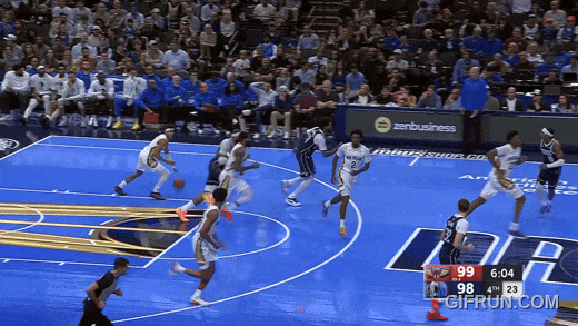 然后就是比赛结尾,独行侠99比100落后的绝境,状元出来接管:叫掩护挡住巴图姆,面对祖巴茨的换防,内外假动作,摆脱一线空挡,高跳中投,101比100反超。